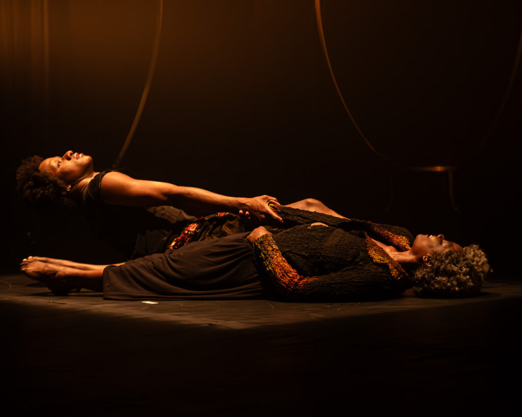 Os corpos em cena carregam a densidade das marcas do racismo, do que foi atravessado e a leveza de um afeto que insiste. A água, elemento cênico que dialoga com a densidade do carvão, representa o fluxo da ancestralidade e a possibilidade de cura. “É rio que carrega cinzas, lágrima que rega a terra, maré que embala os afetos negados, mas jamais apagados. A água tensiona sem silenciar, cura sem apagar e dissolve para transformar”, complementa Gal Martins.